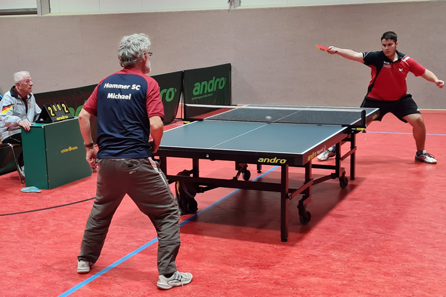 Im Hammer Westen erzielten Manfred Scharbaum/Dirk Schnickmann und Thomas Jäkel/Andreas Meier die Zähler in den Doppeln, wogegen die TuWa-Spitzenpaarung Andreas Idczak/Dominik Juppien in drei engen Durchgängen das Nachsehen hatte.